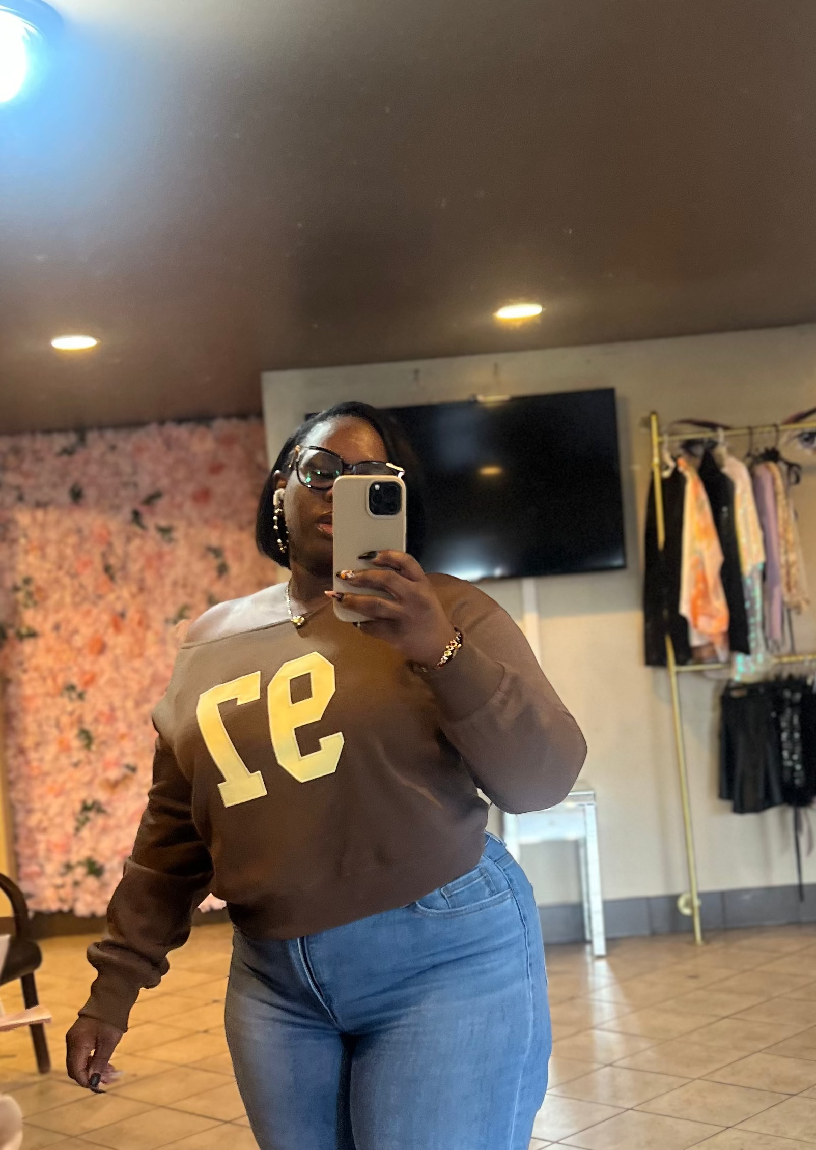 Off the shoulder graphic sweat shirt